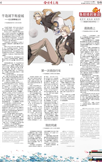 点评:胡耀小朋友从暑期一开始就坚持每天早上6点起床进行晨跑,每天运动1个小时左右,已经坚持1个月了。这篇文章很好地向我们展示了他的晨跑历程。小作者很巧妙地选择了晨跑之路上遇到的两个人物“肌肉哥”和“瘸腿老人”进行描写。“结实的拳头”“诱人的汉堡”“绿巨人”三个比喻,写出了孩子眼中“肌肉哥”傲人的形象。“瘸腿老人”的描写,在自己的观察得出的“好像很吃力”和“好像又一点儿也不吃力”看似矛盾的结论中,让我们看到了一个虽身残但志坚的老人形象。而小作者正是从擦肩而过的“肌肉哥”身上找到自己晨跑的目标,从每天相遇的“瘸腿老人”身上获得每天坚持的精神支柱。晨跑路上正因为偶遇了“肌肉哥”和“瘸腿老人”,才使得一个被逼迫着晨跑的孩子变成一个主动积极参与晨跑的孩子。首尾相互照应的同时升华了主题。相信小作者的晨跑之路会越跑越坚定,人生之路也会越走越精彩。