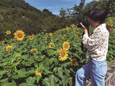 伴随着爽心的秋风,在王阜乡板桥自然村淳安县委旧址所在地,葵花园揭去了遮面的绿纱,露出黄艳艳的“脸盘”。金色的脸盘周围旋绕着许多小黄叶,恰似太阳射出的道道金光,给这片红色胜地增添了令人敬仰的神圣感,引出游人无限遐想。