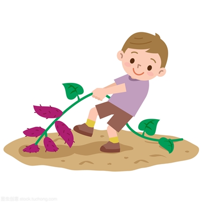 小伙伴们看见我挖到了番薯,也兴奋地跳进了番薯地,不甘示弱地挥起了大锄头。我继续挖着,为了不再把番薯铲破,我小心翼翼起来。先用锄头轻轻地把上面的土拨掉,让番薯露出了小半截脸,再把锄头一挥,用力一拉,“嘣!”由于用力过猛,我手滑了,一屁股重重地摔倒在地上。大家看见我这副熊样,忍不住哈哈大笑。我忍着痛坐起来看我的番薯,哇,三个完好无缺的紫红色番薯正对着我笑呢!屁股上的疼痛似乎一下子就烟消云散了。