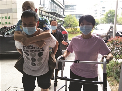 西园社区发动社区工作人员中的“有车族”,为身体健康但腿脚不便的居民提供接送式服务,并安排年轻力壮的工作人员负责残障、伤痛、老年市民的上下楼梯服务。年近八旬的市民老洪因脚摔伤无法自主行走,社区工作人员一路护送,精心照料。如愿接种疫苗后的老人拉着社工的手赞声不已。
