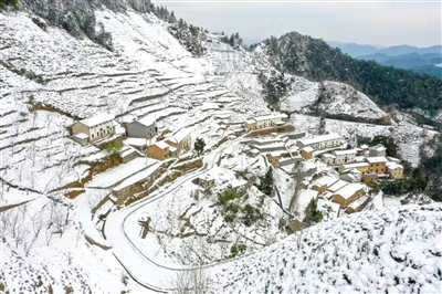 2月23日,春雪过后,位于鸠坑乡的万岁岭上,依然是千里冰封,斜坡上的柴坦村在白雪覆盖下显得格外的谧静,与万岁岭上绵延的群山组成一幅江南的“北国风光”美景图。