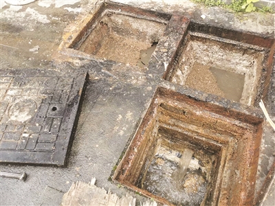 县五水共治指挥部“找寻查挖”专项行动暗访组于文昌镇潭头村潭头油厂屋后按快门。该处窨井污水满溢出路面流入河道。
