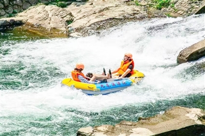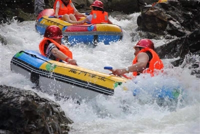龙门漂流深藏幽谷,地势落差大,漂流惊险刺激,全程约3公里,单体落差最大的达22米。乘坐漂流皮艇飞流直下,如银河倾泻穿越峡谷,一路体验漂流失重快感,让你尖叫连连。