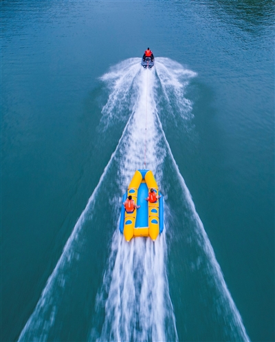 在龙晨水搏乐园可体验“陆上玩法”,单车骑行、花园房车、湖畔烧烤等,也可体验“水上玩法”,摩托艇水上漂移、动感皮划艇、水上香蕉船冲浪、水上飞鱼……水花四溅,风声呼啸,速度与激情的快感让你肆意尖叫。