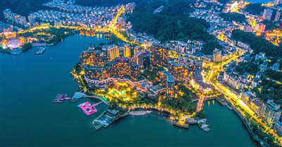 初秋的千岛湖镇,华灯初上,夜色多姿,让人陶醉其中,尽享宁静自然。