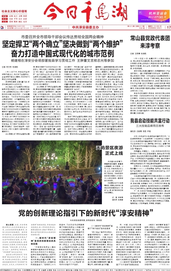 三要强化真学真悟,深入开展学习贯彻习近平新时代中国特色社会主义思想主题教育,强化理论学习和运用,在不断的实践中发展创新出更多新时代“淳安精神”的践行方式和弘扬路径。