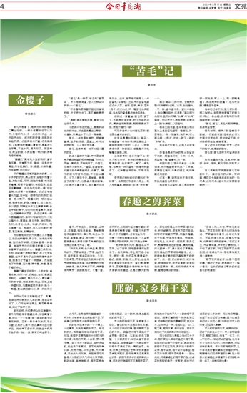 每回炒苦毛,祖母只拿出一小块猪油,放热锅里拼命熬出一丁点油,和着苦毛煸炒,炒熟的苦毛,吃到嘴里还是苦的。