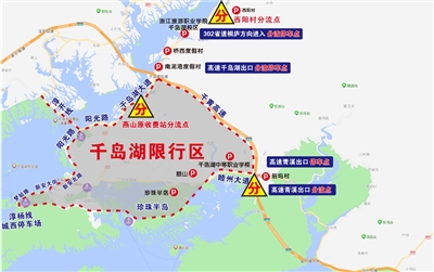 请尽量选择高铁、旅游大巴等公共交通来淳安千岛湖;自驾游的游客注意,届时,将在高速千岛湖出口、高速青溪出口、302省道千岛湖城区方向、330国道千岛湖城区方向设有分流点,引导限行车辆分流停靠在城区外8个临时停车服务点,请驾驶人服从交警和现场工作人员的指挥。