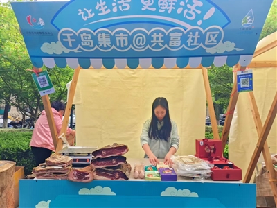 每月一次的“千岛集市”主题党日推介活动4月主题为“千岛集市”@共富社区。本次活动设置了主题推介区、美食推介区和“千岛农品”推介区三大区块,既有春日限定的春笋、春茶,也有作为“常驻嘉宾”的米羮、米粿,更有淳味十足的日晒面、农家酱。现场通过产品展示、品尝试吃、优惠促销、互动游戏等形式,对千岛湖的时令“春鲜”与特色农产品进行宣传推介。
